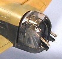 The turrets were glued in position and the propellers and main gear were attached. I used the Falcon large Perspex dome.