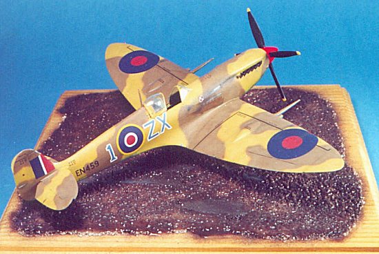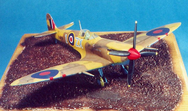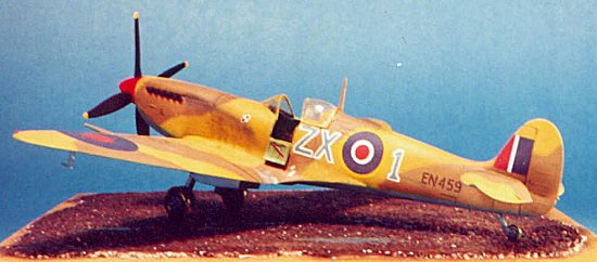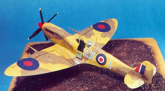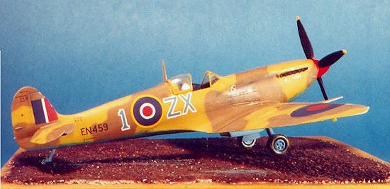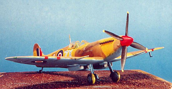 I had decided to do the Mk.IXc flown by Eugeniusz Horbaczewski in the Polish Fighting Team. These Spitfires undoubtedly came out of the factory in the standard European finish, and were repainted at Aboukir - like most Spitfires used in North Africa - so I freehanded the scheme of dark earth and middle stone, using Gunze-Sanyo's paints for these colors. I later received a color photo of this particular airplane from a friend, and was able to see my surmise about the method of painting was correct.