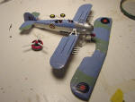 I also like to use coloured pencils to bring out lines across the plane in different areas, and don’t stick to just brown and black…sometimes a bright purple line will really set off a wing edge. If you look at box art, you will notice that the painters rely quite a lot of different tones to make a plane have some “oomph”…which is just what I wanted with this little gem.