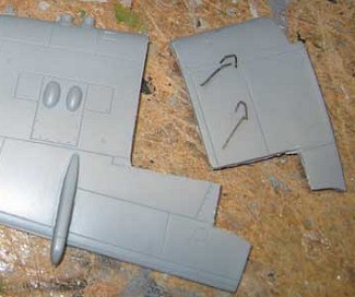 The shackles are modified 1/48 250lbs US bomb fins from an Accurate Miniature kit. With the radar now behind me, it was time to separate the men from the boys, namely with the fitting of the wingfold PE parts.