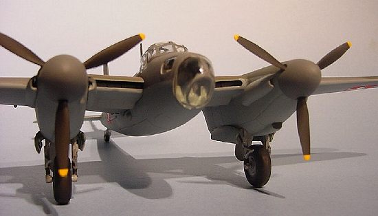 Before gluing the wings together, I had glued the radiators in place, painted with Testor Aluminium and the surrounding areas Flat Black. To ease painting, I left the exhaust shrouds off and then I masked the aircraft up, with great care for the landing gears and I was ready to paint.