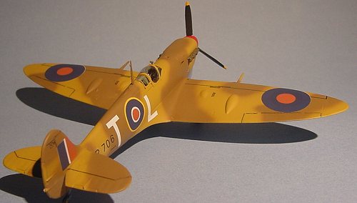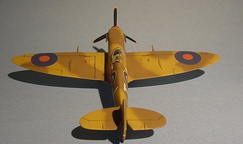 I then shot the model with Poly Scale Flat, highlighted the control hinges with a pencil and unmasked the canopy to present my Spitfire Mk Vb to the rest of my collection (only the Fw 190 was not happy about it, I wonder why…)