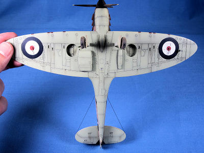 I airbrushed Tamiya XF-21 Sky onto the undersides, letting the
