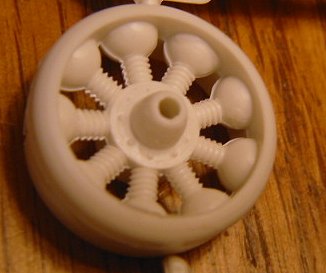 The engine and cowl are a single molding. The cylinder detail is somewhat “glob-ish”. The cowl has a depression or big sink marks around the ring that will need some putty to fill. The long exhaust of the Mk II is provided.