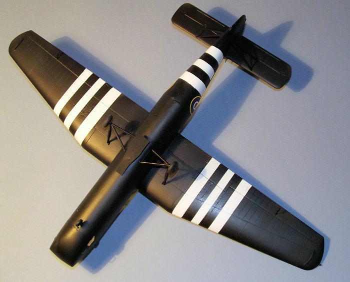 The airframe was primed with grey auto primer from a rattle can. The white areas of the invasion stripes were applied with Tamiya Extra Fine white primer from a rattle can and masked off with Tamiya tape