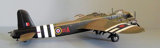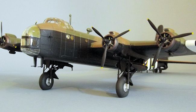 I added the already painted engine cowlings, cowl fronts, exhausts and intakes. The tail turret came next, followed by a check back through the instructions to account for the main wheels, aerials, pitot heads and glider towing yoke.