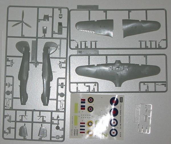 Before I get into the construction of this model I would like to say that the first model that I recall building that did not look like a toy and more like a scale replica of an aircraft was a Frog Hurricane II kit (with options for B and C versions with both bombs and rockets and moveable control surfaces). Ever since then I had had a soft spot for the four canon version of the Hurricane. I also have a soft spot for night-fighters. So when I saw this model available for $6.00 on-line I bought it. I then found an excuse to build it when Modeling Madness had its “It’s the Weather” contest. Now to the construction.