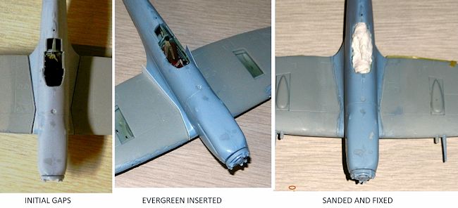 gaps on the top of the wing roots. Just added strips of Evergreen, sanded and
