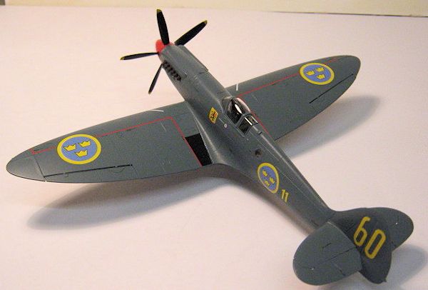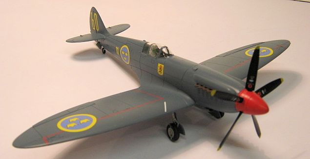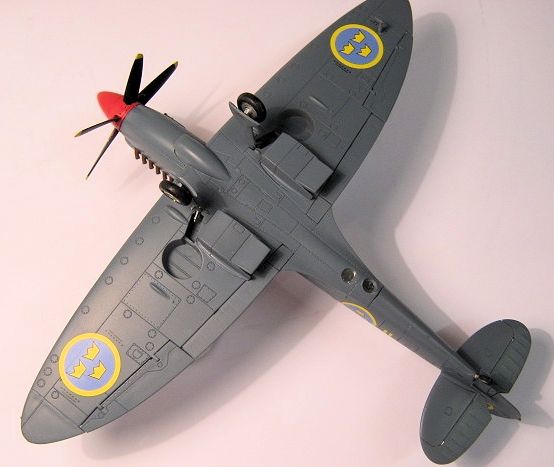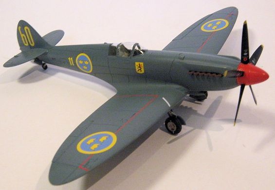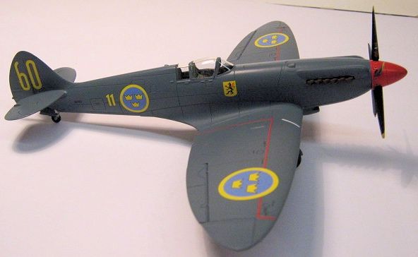 The RAF version has a two colour paint scheme with upper surfaces of Sea Grey medium and sides and under surfaces in PRU Blue; the Swedish version could hardly be simpler in overall PRU blue with a red spinner.