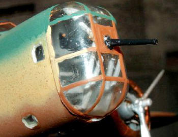 The nose glazing can also do with some better detailing as the kit offers, some of the supporting tubing is missing. However, on good pictures of the nose those tubings are very visible, and making them is really easy. Take the right length, and glue the parts inside the clear part on the right spots.