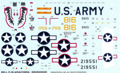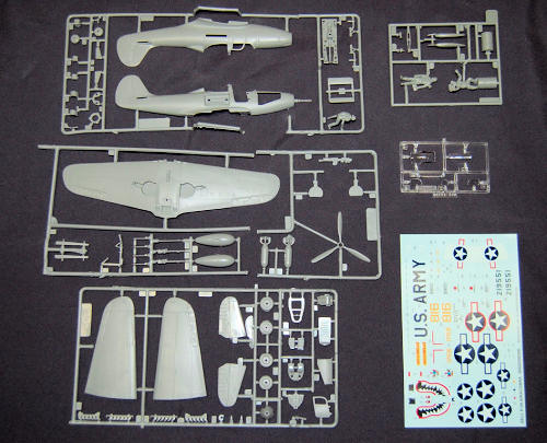 Watch the painting instructions on this kit. If you follow the recommendations, you would be painting the interior in zinc chromate and the landing gear struts in white. (?) P-39 interiors were done in a dull dark green known as Bell Green on everything aside from the engine, guns, and magazines. Also, the exterior paint on the P-400 are USAAF equivalents to the British colors, so don't break out your RAF colors for this version!
