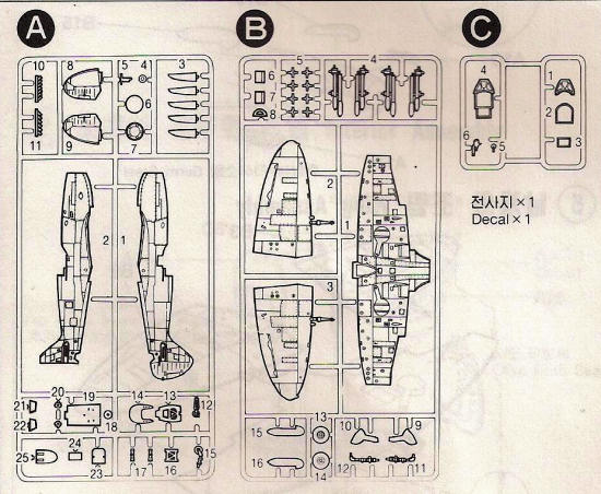 Being a XIVc the kit features a “C” wing, i.e. two 20mm Hispano cannon and four
