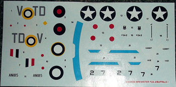 there are two decal options: one is an F2A-2 of VF-2 US Navy aboard the USS