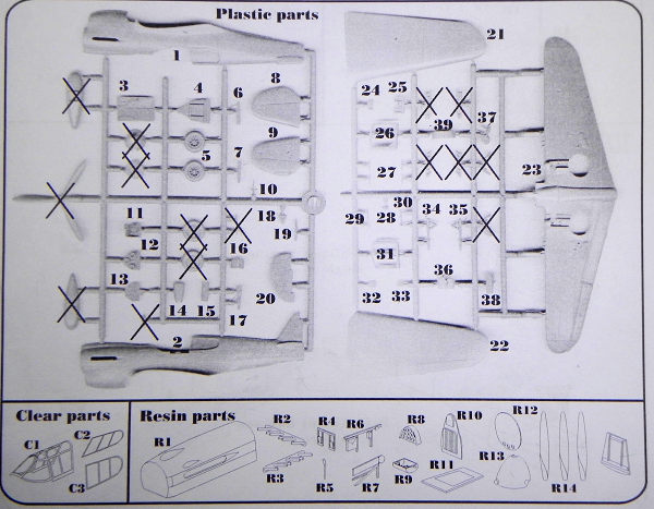 In this boxing, the AZ kit is augmented with some very nice resin bits and decals permitting you to assemble a Klimov-engined P-40. The kit parts are composed of grey plastic that is a little on the soft side a la MPM/Special Hobby. The model features a very nicely detailed cockpit and wheel wells. The canopy is perfectly molded and very clear: just dip in Future and glue in place.