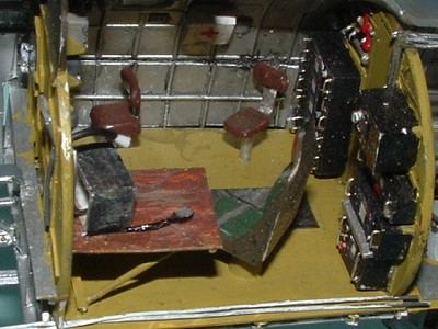 I built up an APU (Auxiliary Power Unit) from the engine of a 1/72nd scale Kubelwagen engine and scrap plastic and stationed it against the aft cockpit bulkhead behind the co-pilot's seat. The APU placement varied from plane to plane and I've seen them in the cockpit, in the bomb bay, in the radio room, in the tail, and under the decks, I just guessed on Murph and installed it where I did because there was room there and it looked pretty barren.