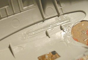 gaps. After scraping down the joint, I only needed a little bit of Mr. Surfacer to get rid of the centerline seam. I then attached the tail