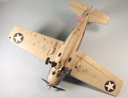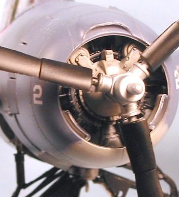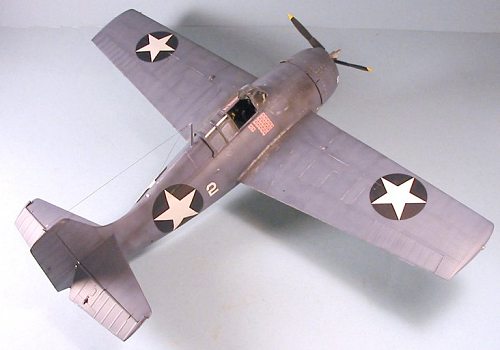 It is most likely that this airplane - which had been a “hangar queen” for quite some time, was not in the best condition, though probably not as weathered as an airplane in service on Guadalcanal. I decided to “ding” it around various panels and on the upper wing surface where pilots and maintenance personnel stood on the wing, and to add some oil stains. Once this was done, the model was given several coats of Testor’s Dullcote to obtain a final finish.