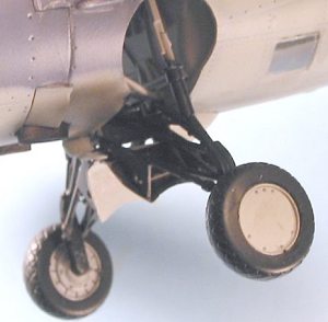 The landing gear was painted with the main gear leg light grey and the rest of the assembly flat black, which is correct for the Wildcat.