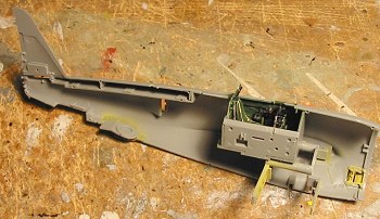 attach the upper rear fuselage and fin parts to their respective fuselage