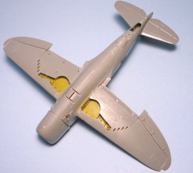 Tamiya's propellers are far superior to those of Hasegawa; the only way to do a P-47D-25RE right with the Hasegawa kit is to rob the old Monogram kit of its prop. I do, however, like the fact that any of the Hasegawa "bubbletops" have all the parts necessary to do any sub-type, since the vertical fin extension is in all the kits. Hasegawa's kit only allows you to build an airplane with the flaps up; I like the Tamiya choice, but it's not something one "has to have."