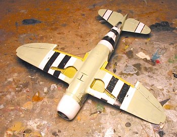 I applied Tamiya "Smoke" for the exhaust stains, but other than that did little weathering, since these airplanes were pretty clean - they were well-maintained in England, and the period of the D-Day stripes was early in their career, so they likely hadn't had a lot of the new paint scheme wear off yet.