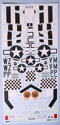 The decals are standard Tamiya, i.e., thick. However, those modelers who are "D-Day stripe"-challenged will be happy to find a complete set of lower-surface stripes, which will likely go on very easily with a good "timed rolling barrage" of setting solution. The sheet provides an airplane of the 78th Fighter group, and one flown by General Bill Kepner, C.O. of 8th AF Fighter Command in 1944-45. So far as decals are concerned, there is a plethora of great sheets of bubbletop P-47s out there from Aeromaster/Eagle Strike, Superscale and Cutting Edge, to name a few (No kidding, I've reviewed at least two dozen in the last few months alone! Ed). There was likely no other airplane flown in combat in World War II with more interesting and colorful markings than the P-47 bubbletop. Those modelers smart enough to buy 3-4 (or more) of these from HobbyLink Japan at the reasonable "Japanese price" will find plenty of ways to make different airplanes from this great kit.