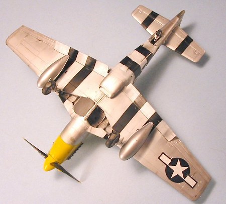 The photos show this airplane with a “semi-gloss” finish to the paint. Trust me, that wasn't the paint: it was automobile polish applied to the airplane by the ground crew. After a final coat of Future, I gave the upper surfaces a coat of Dullcote, followed by a light coat of Modelmaster Sealer, which gave the semi-gloss “waxed look” I was wanting.