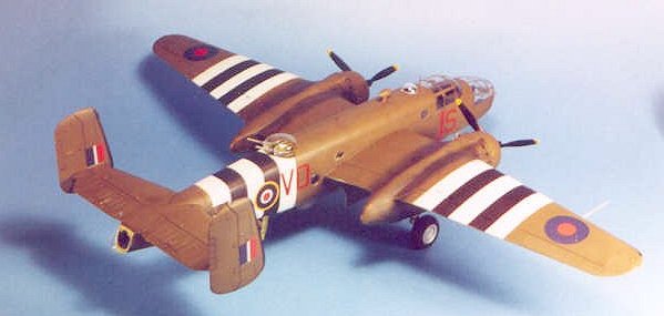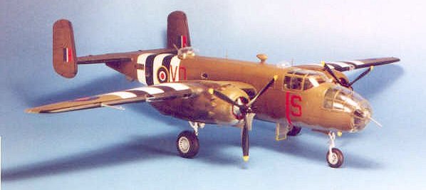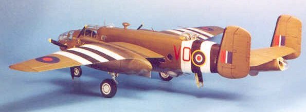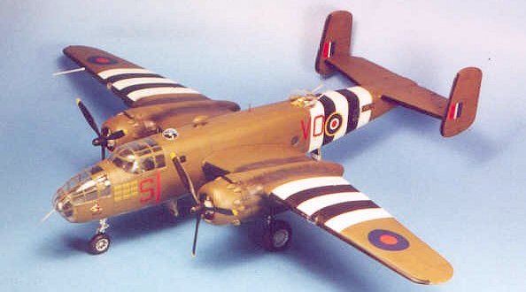 I chose to do an RAF airplane for two reasons: I wanted to do a B-25 with invasion stripes and there were no USAAF groups that participated, and I have a beautiful John Dibbs (is there any other kind?) air-to-air shot of the restored Mitchell II in England - the only one of its kind in the world that flies - carrying these markings.