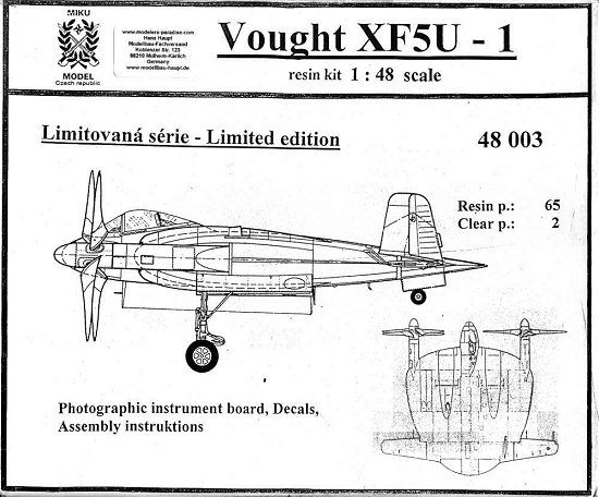 Miku Models 1/48 XF5U-1 'Flying Pancake' |