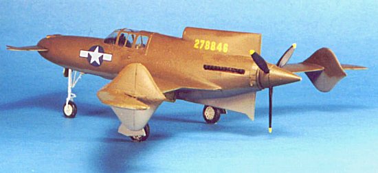 Since the XP-54 really did not involve unknown aerodynamics with its traditional layout, and since the XP-56 utilized the "flying wing" layout which had already flown as the N-1M, there was no need for initial aerodynamic tests with these designs. Such was not the case with the XP-55. The canard layout was considered so radical that a full-size wooden prototype powered by a 275 h.p. Menasco was first flown in December 1941. This success of this proof-of-concept airplane led to approval of the three Allison-powered prototypes on July 10, 1942; the first - 42-278845 - flying July 13, 1943.