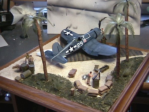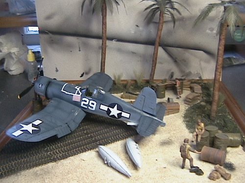 When I first got into modeling about a year ago, I had a solid vision in my head on what I wanted my first diorama to look like. I've always enjoyed the Corsair and the South Pacific theater, so I set out to create them. It worked out fairly well, but as I improved my skills and eye for detail, glaring problems would emerge and bug me. Unwilling to construct another one, I opted to re-work this diorama three times with various improvements. When I finally replaced the Corsair, I felt it was finally complete.
