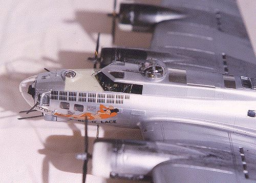 I decided to build the B17G version of this kit, 'A Bit O Lace', guess the image of the reclining lady on this aircraft really got to me. It's interesting to note that the box art for the 1/72 scale Airfix kit shows the port outer motor on fire during a daylight raid. The Pro Modeller version has the outer wing tip replaced by an earlier aircraft, which was painted in the olive drab upper and light grey lower. Is this a coincidence or are the two kits inextricably linked?