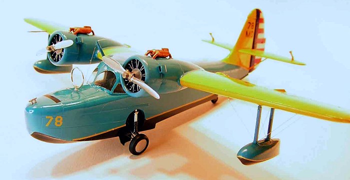 The fuselage color is an odd slightly green-tinged shade, which, according to Draw, is made by bluing up Model Master Modern Russian Interior. It was a difficult mix that, when dry, changes hues drastically according to the light source, and doesn’t seem to properly register at all on the accompanying photos. The thought can’t be avoided that the color is actually an anomaly. Draw’s website indicates that the scheme was copied from a ‘40’s magazine cover. Color films of that period, to say nothing of 60 years of aging, are known to add just such a tinge to photos.