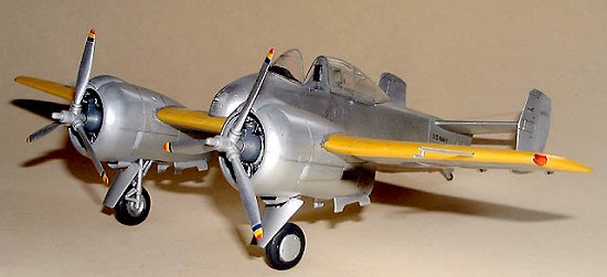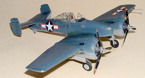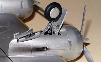 Minicraft includes a nose gun-bay with four 50 cal. guns in the short-nose version. The Skyrocket went through numerous armament proposals, finalizing on the four .50 cal. Machine guns. But I could find no evidence that the aircraft ever flew with these installed, so I did not use them. Besides, what Minicraft gives you looks like wood-block, mock-ups, in a featureless compartment.