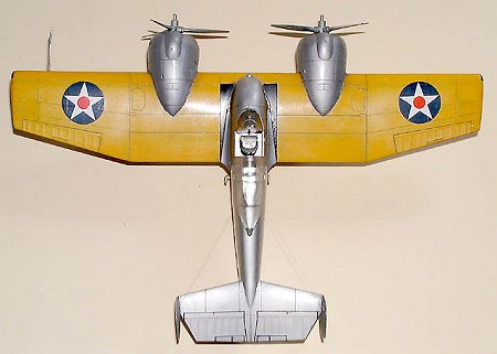 Normally, I don't do the external painting until after assembly. But in this case, it seemed natural to paint the wing yellow before adding the silver nacelles and fuselage.