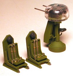 Interior detail is comprised solely of two full figures for the cockpit and two half figures for the dorsal and tail turret positions. A boarding ladder is furnished as a prop to prevent the assembled model from becoming a tail-dragger, while the propellers are adequately detailed for the scale.