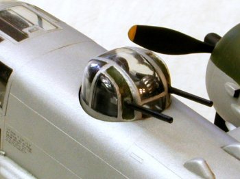 The reconfigured fuselage and the new tail turret presented a severe center-of-gravity problem to NAA’s engineers so in a final gesture, the Bendix dorsal turret was relocated from the waist to the navigator’s well behind the cockpit, orphaning the navigator/cannoneer’s primary MOS. Of secondary benefit to the waist gunner was the additional room for his weapons and the ammunition magazines feeding both the waist and tail guns.