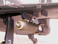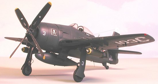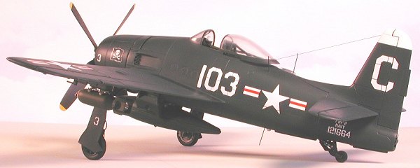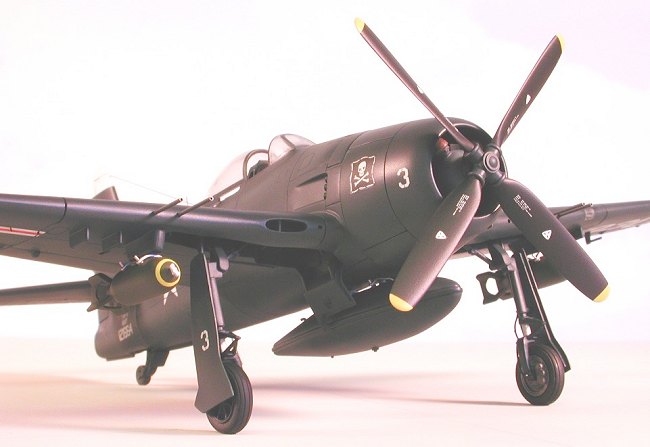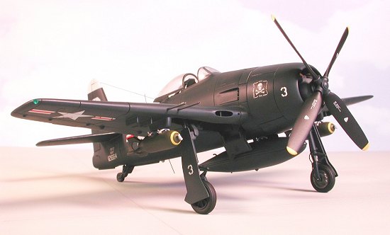 The canopy transparencies are very poor due to errata on the inner surfaces caused by overuse of the molds and should be replaced by vacuform equivalents. External stores consist of a centerline fuel tank, two poorly-rendered 1000-lb bombs, and four 5-inch HVAR rockets. Antennas and cannon barrels are molded integral with the fuselage and wing halves making seam clean-up problematical.