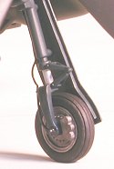 Initially I gave some thought to scratch-building the struts but since I was sure to take incoming fire from my protégés who would gleefully castigate me for exceeding the 100 hours it took coalition forces to subdue the entire Iraqi army during Desert Storm on a mere single-engined fighter plane model, I settled for detailing the struts with some bits and pieces. After drilling out the lightening holes in the oleo-scissors, I installed some hold-outs and threaded some small wire through the holes to serve as brake lines, while brass eye-bolts were used to replicate the tie-down rings. Next, I glued the struts to the wing mounts and modified some Monogram F-100 speedbrake actuators to approximate the vertical torsion rods at the rear of the struts. Finally, I used the retraction jacks from the outrigger wheels of Monogram’s B-52 as stand-ins for the missing articulated arms, anchored to the rear of the struts with steel pins and glued into the wells with Testors liquid cement. Time for the wheels…