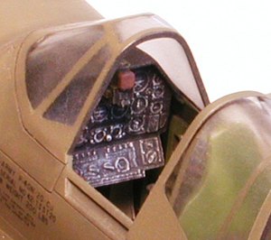 The cockpit is comprised of nine parts with a level of detail reminiscent of the older Otaki and Fujimi releases. The instrument panel is correctly depicted but the remaining components are in dire need of some serious attention. A clear gunsight rides atop the instrument panel coaming while the three-piece canopy permits display in the open position, albeit with some difficulty.