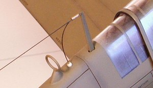 Once the antennas were solidly glued from the underside I inserted the completed cockpit from below and cemented it into position. The empennage was added next after first fitting a pair of brass wire pins through the fuselage and both stabilizers at the roots to provide structural integrity and to maintain a 0 degree dihedral angle. The plastic rudder bellcrank was supplanted by a steel wire replacement then I prepared to mate wing to fuselage.