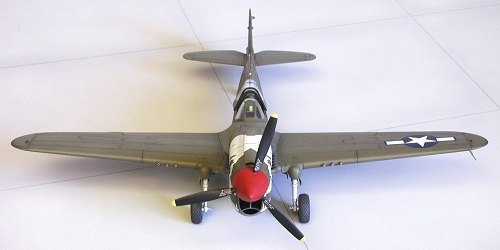 No great shakes here, the standard olive drab over neutral gray camo scheme was applied using my 25-year old Pactra enamel homebrew for the uppers and Modelmaster ‘primer’ from their enamel car line on the undersurfaces. This primer gray was also used as an undercoat for the red on the spinner, producing a deeper more restrained hue rather than the brighter red of a raspberry popsicle had I used white to prime.