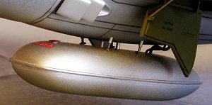 External stores consist of a pair of 500-lb bombs for the wing pylons and the