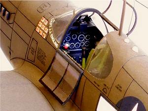 The hinged canopy pieces were fabricated by vacuforming clear butyrate, using K & S aluminum airfoil shapes as masters. After several attempts I managed to get a serviceable set made, then trimmed them to fit the model. After masking and painting the frames they were installed, again using white glue. Following a flat black enamel wash on the monofilament line, I press-fitted the drop tanks to their pylons and spun the prop into position up front, and the model was complete.