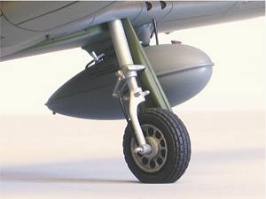The wheels and tires were supplanted by resin TD replacements as I thought the tread pattern on the AM tires was a bit overdone when compared to period photos. After painting everything in the appropriate colors I attached the remaining doors and turned my attention to the drop tanks.