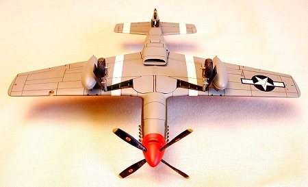 Home-brewed colors mixed from the Modelmaster line of enamels were used exclusively while the model was decaled using the MicroScale finishing system and SuperScale decals. I used Liquitex tempera paint as a wash to highlight the surface detail, gun mounts, and the various recessed areas of the radiator, then sealed the surface with Testor’s Dullcote lacquer. Thinned white glue was used to attach the vacuformed canopy sections, the landing light cover, and the wingtip position lights. Spinning the propeller onto the front of the cowling completed the project.