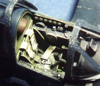 The only kit parts in the cockpit are the instrument panel and the control stick. The rest is scratch built.