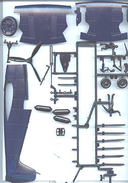 the ordnance, the wheels and the propeller, while 3 other dark blue sprues hold