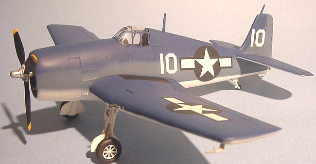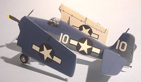 This Hellcat is a very nice kit. It builds rapidly, looks like the real deal and has folding wing so it doesn’t take that much space on the display shelf. However, it could really be helped by a resin interior and wheels (if you don’t have any Corsair spares), and the propeller is not square enough (especially at the tips). It’s a nice addition to any collection, and with the low price and excellent decals in the box, it’s hard not to pick it up. Don’t you think mine has a TFCish look…?