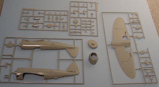 Under the sturdy cardboard cover (which sports an excellent painting), another great Hasegawa kit awaits. The majority of the parts are enclosed in one bag, and feature light grey styrene, excellent detailing and very few ejector parts. In fact, the only ones I found are located on the gear strut covers, and will have the landing gear struts to hide them. As you can expect with such a new kit, the panel lines are all recessed and flash is about non-existent. The cockpit is very well detailed, with the instrument panel provided with a decal, although the gauges can also be hand painted since they are raised. Unfortunately, the seat is without seatbelts, so you will have to dig them up somewhere else.